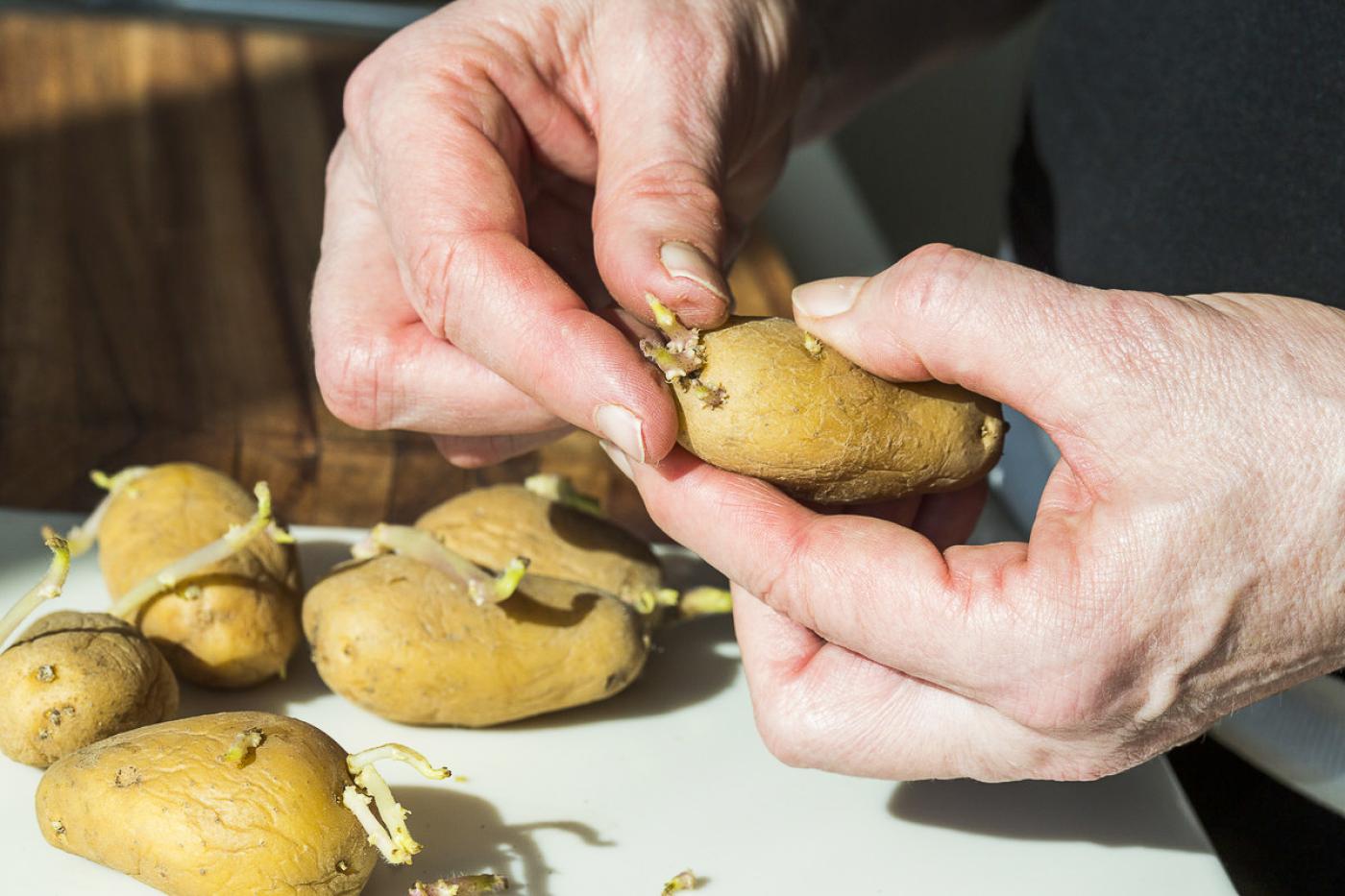 Nach dem Auslagern treiben die Erdäpfel aufgrund der höheren Temperaturen manchmal schon in den Regalen oder dann zu Hause aus. Diese Keime sollten vor dem Kochen entfernt und die ausgetriebenen Augen einfach weg geschnitten werden, dann sind die Erdäpfel immer noch genießbar.