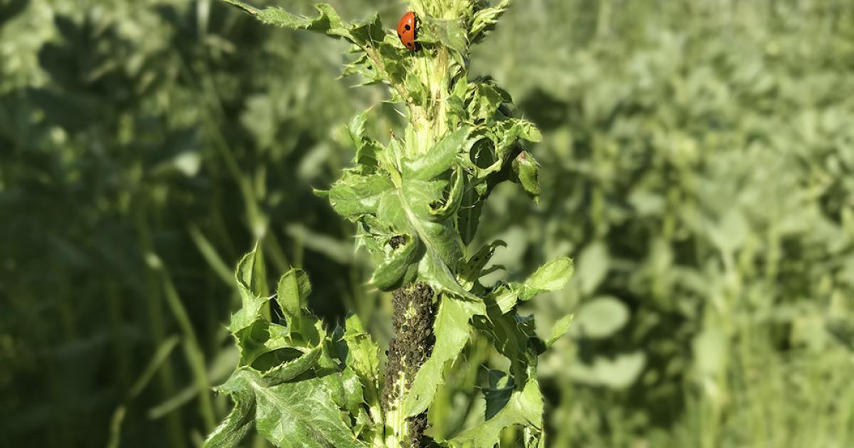 Wie Blühstreifen und Untersaaten Blattläuse auf Ackerbohnen regulieren.