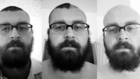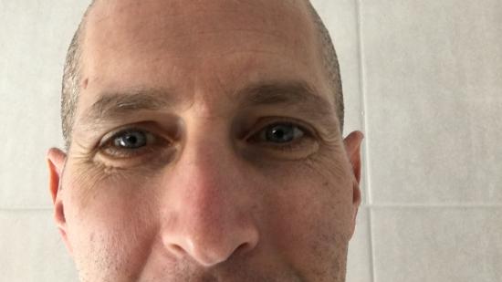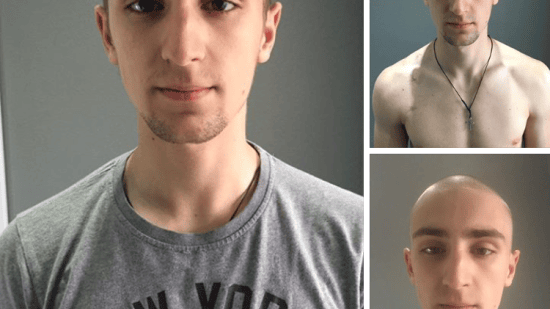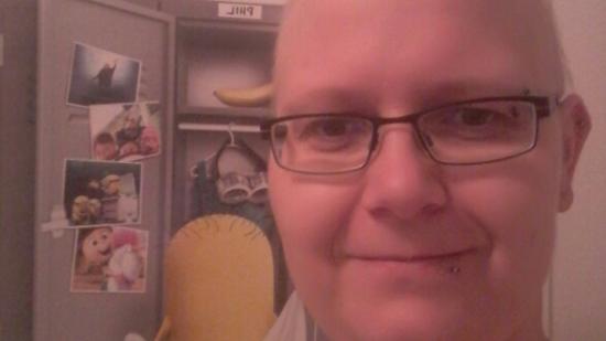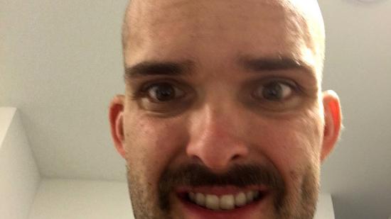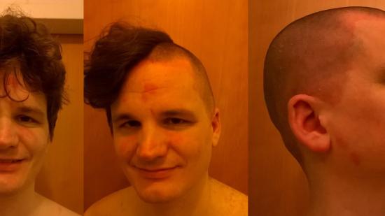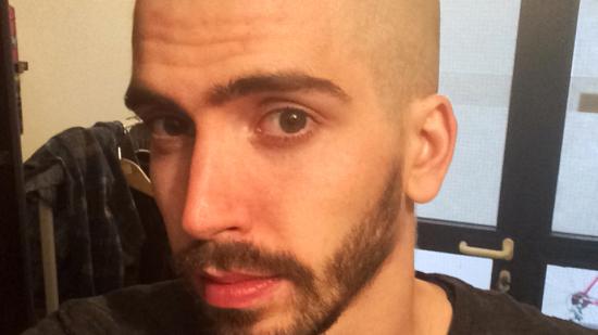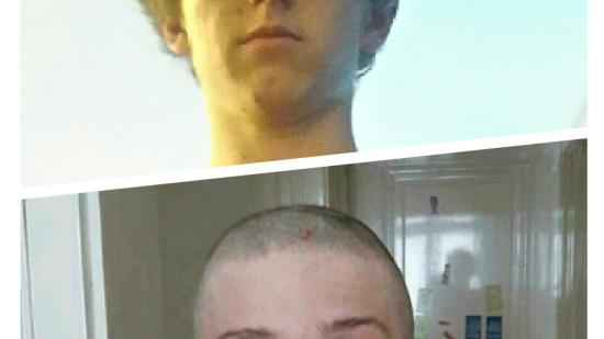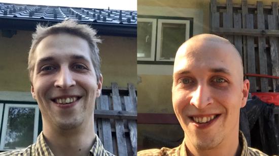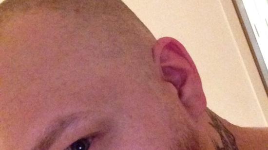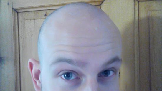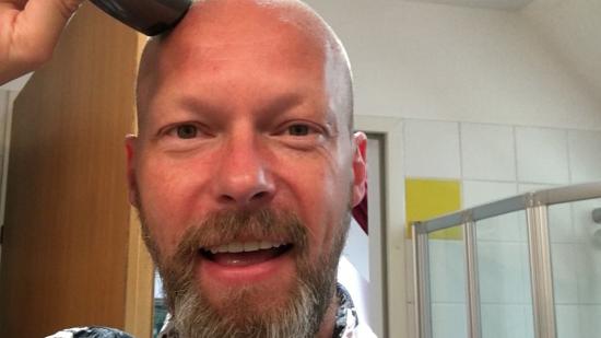 • Johannes P. mit Glatze für die Aktion Glatze oder Spende