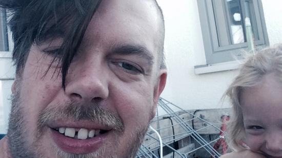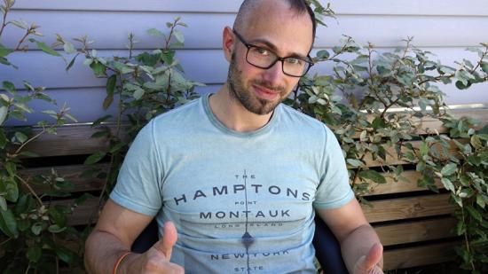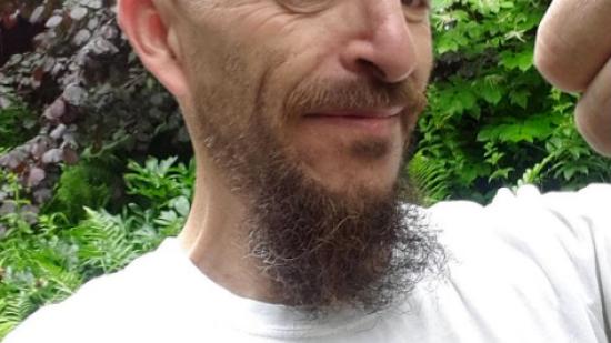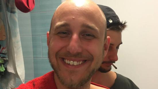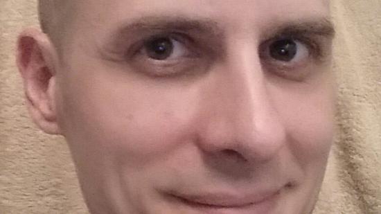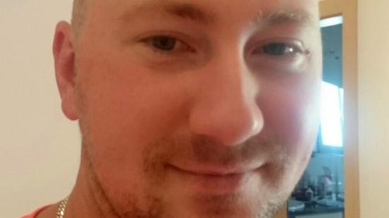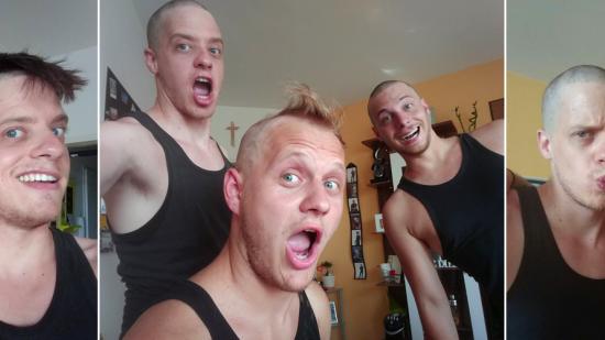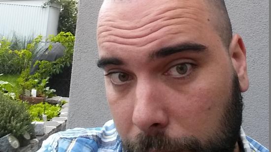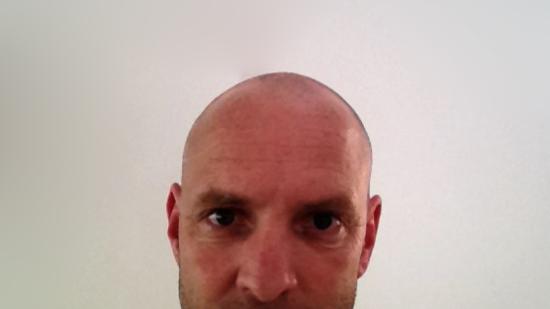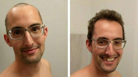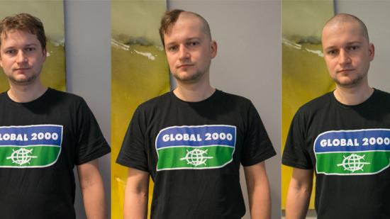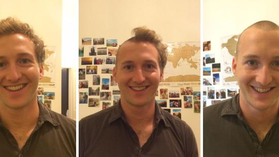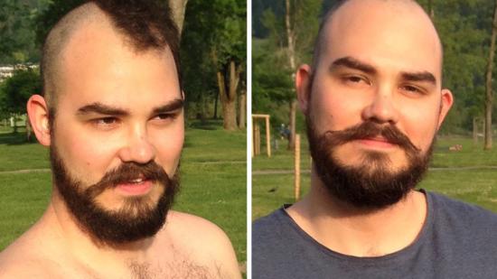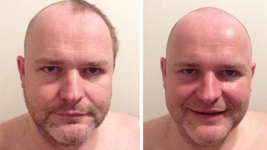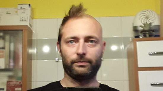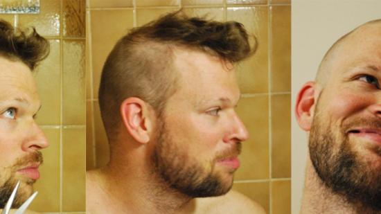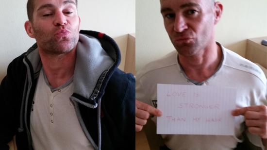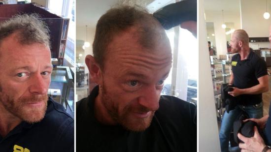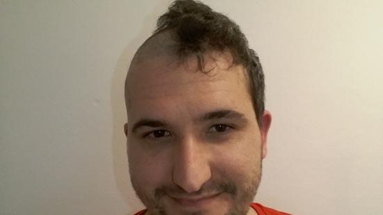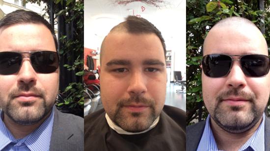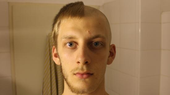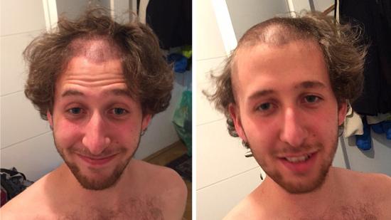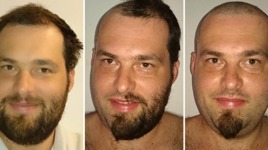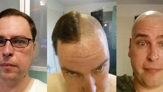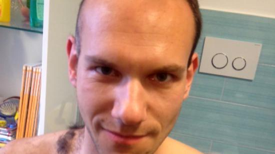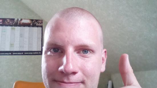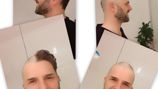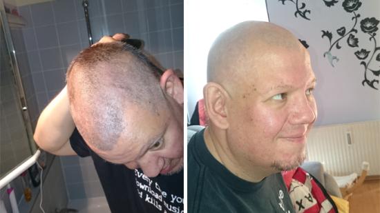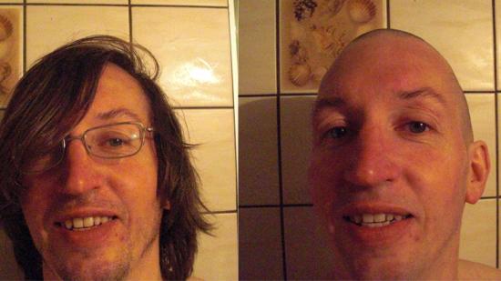 • Stefan F. mit Halbglatze für die Aktion Glatze oder Spende