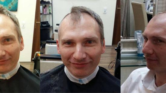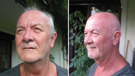 • Karl S. mit Halbglatze für die Aktion Glatze oder Spende