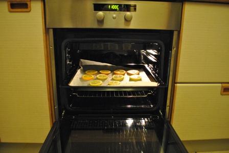 Scheiben auf ein Backblech legen, bei 100 Grad Celsius trocknen lassen, nach etwa 1,5 Stunden Scheiben wenden, weitere 1,5 Stunden im Rohr lassen.