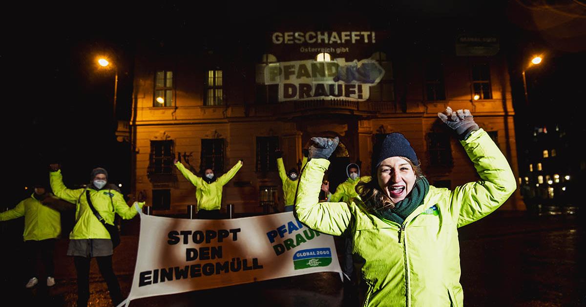 Knapp 35.000 Umweltschützer:innen haben im Laufe des letzten Jahres unsere "Pfand drauf" Unterschriftenaktion unterschrieben. Unsere gemeinsame Durchhaltekraft trägt nun endlich Früchte. Heute wurde im Ministerrat die Abfallwirtschaftsgesetz-Novelle (AWG) beschlossen, darin enthalten ist die Verordnungsermächtigung für die Einführung eines Pfandsystems, die letzte Woche schon angekündigt wurde. Die Entscheidung, den Plastikmüllbergen und der Ressourcenverschwendung endlich ambitionierter entgegenzutreten, freut uns sehr. Monatelang haben wir uns für ein Pfandsystem stark gemacht. Nun kann die Natur endlich aufatmen und ein notwendiger Wandel vollzogen werden. Getränkeverpackungen bekommen einen Wert und können so wie Mehrwegflaschen in den Supermarkt zurückgebracht werden.