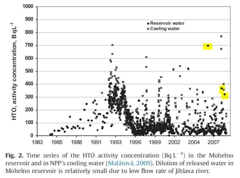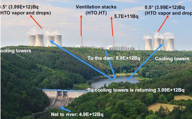 „Die Wasserprobe enthält Tritium mit 350 Becquerel pro Kilogramm – ein unbelasteter Fluss liegt unter 2 Becquerel, die Trinkwasserverordnung schreibt einen Grenzwert von 100 Becquerel vor“, erläutert Atomexperte Reinhard Uhrig. „Da das Wasser im Stausee hoffentlich nicht getrunken wird, besteht keine unmittelbare Gefahr, der Betastrahler Tritium mit einer Halbwertszeit von 12,32 Jahren, gelangt jedoch in großen Mengen in die Umwelt und wird über den Fluss Jihlava verdünnt auch in die österreichische March und weiterführend in die Donau verfrachtet.“
