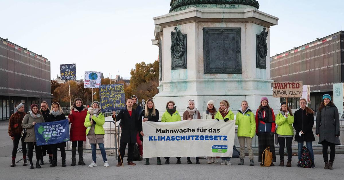 Aktion am Heldenplatz: Aktive von GLOBAL 2000 halten Mahnwache für ein dringend nötiges Klimaschutzgesetz