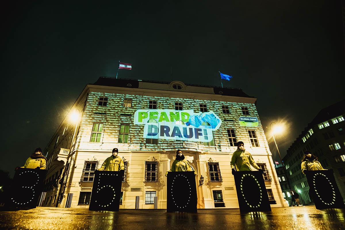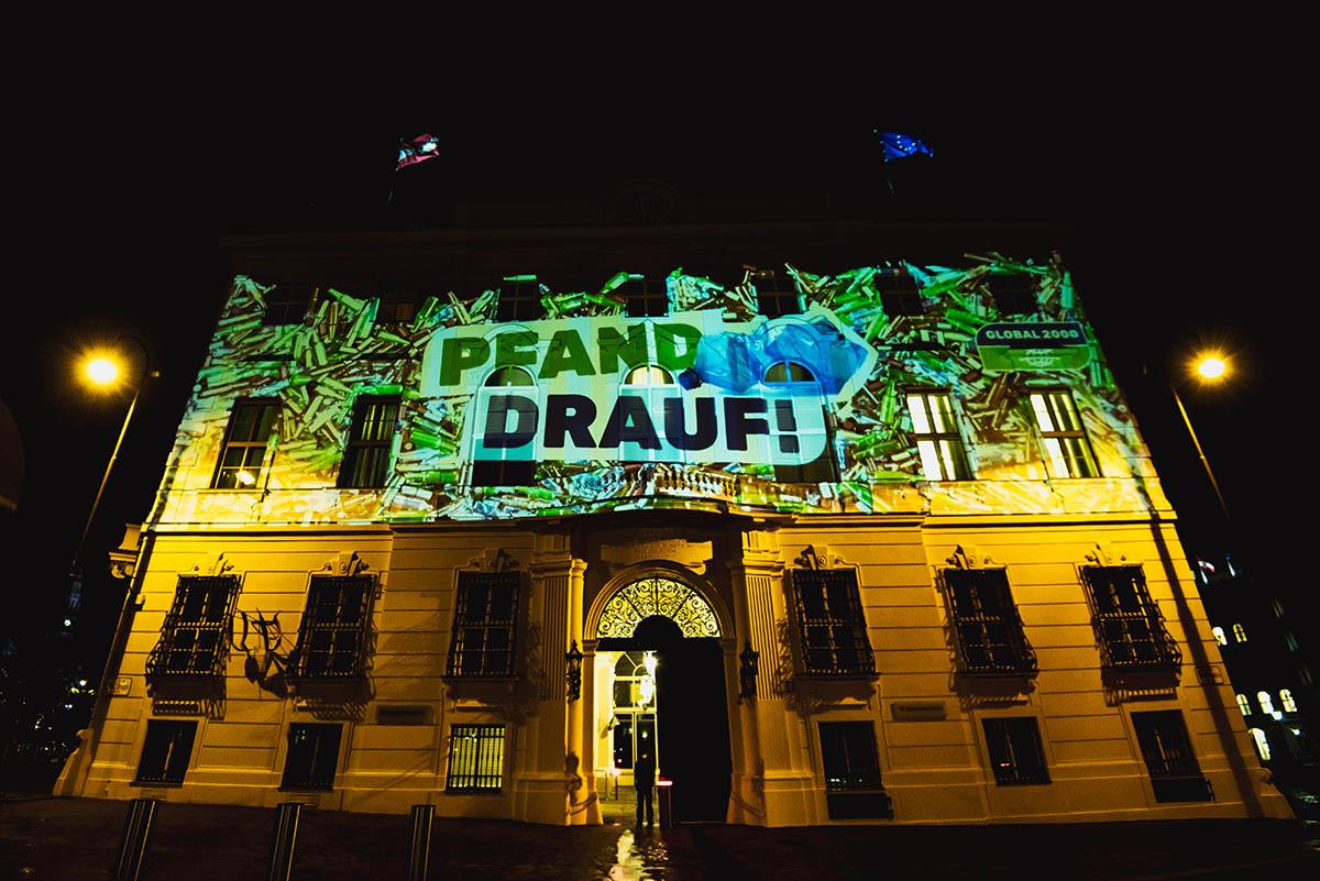 Nachdem uns der Bundeskanzler nicht persönlich empfangen wollte, sind wir kurzerhand zu seinem Büro gefahren und haben ihm die Namen der knapp 35.000 Pfand-UnterstützerInnen an die Mauer des Bundeskanzleramts „gemalt“. Sehen Sie selbst: