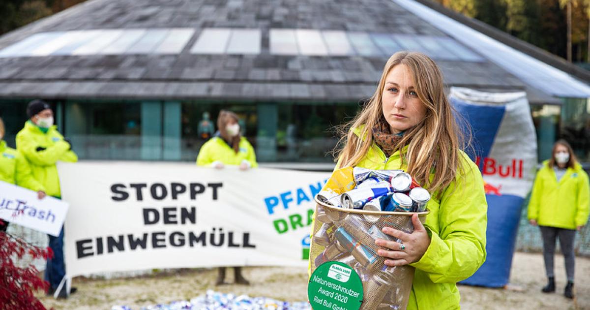 • eine öffentliche Unterstützung von Red Bull für ein Einweg-Pfandsystem, um die enorme Naturverschmutzung und die daraus resultierenden Kosten für die Allgemeinheit zu reduzieren.