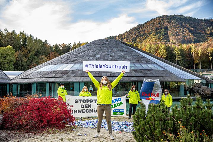 Gemeinsam mit unseren engagierten Aktiven sind wir heute am Headquater von Red Bull in Salzburg und machen auf die verheerenden Auswirkungen ihre Einweg-Getränkeverpackungen aufmerksam.