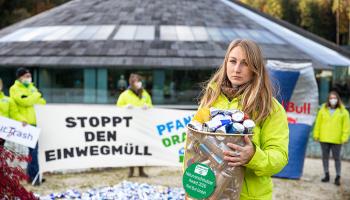 Ein Jahr lang wollte sich der Getränkehersteller nicht zu unserer Aktion und zum Thema Einweg-Pfandsystem äußern. Doch im Herbst 2021 hat Red Bull endlich reagiert! Nach unserer Aktion vor dem Red Bull Hauptgebäude hat sich das heimische Unternehmen nun doch überzeugen lassen: Red Bull unterstützt ab sofort ein Einweg-Pfandsystemexternal link, opens in a new tab! Der Energiedrink-Hersteller hat seine Blockadehaltung abgelegt und tritt nun endlich öffentlich für eine saubere Natur ein. Einmal mehr zeigt sich, dass Hartnäckigkeit und Aktionsbereitschaft Früchte trägt. Vielen Dank an alle die unsere "Pfand drauf"-Aktion unterstützt haben, gemeinsam haben wir den Megakonzern zum Umdenken gebracht.