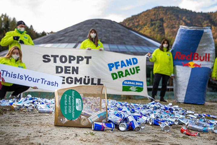 • eine öffentliche Unterstützung von Red Bull für ein Einweg-Pfandsystem, um die enorme Naturverschmutzung und die daraus resultierenden Kosten für die Allgemeinheit zu reduzieren.