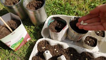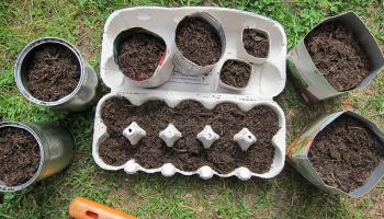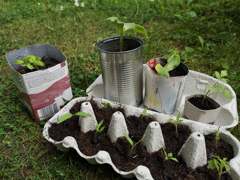 Tipp: Pflänzchen in Gefäßen aus Papier oder Karton können direkt umgesetzt werden. Das feuchte Papier verrottet mit der Zeit.