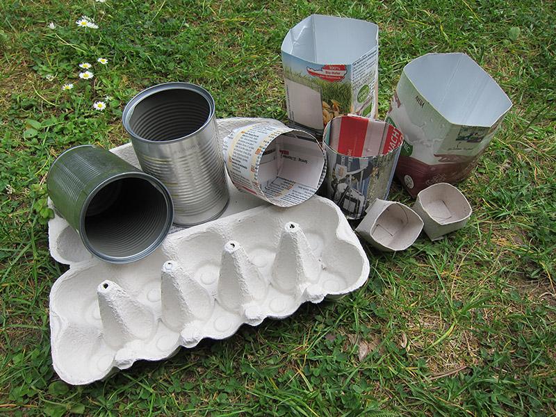 Durchforsten Sie Ihr Zuhause nach einigen der oben genannten Gegenstände und verleihen Sie ihnen eine neue Nutzung als Anzuchtgefäß. Für Zeitungen und die Kartonröhren finden Sie nachfolgend eine genaue Anleitung, wie sie ganz einfach in Gefäße verwandelt werden können. Ausgewaschene Getränkekartons werden circa in der Hälfte auseinandergeschnitten. Dosen, Joghurtbecher und Eierkartons kann man direkt verwenden.