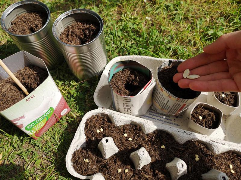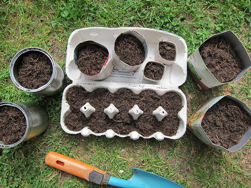 - Erde - normale Gartenerde und nährstoffarme Anzuchterde, immer darauf achten, dass sie torffrei ist