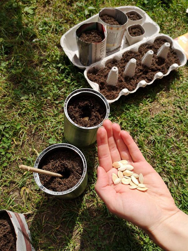 Wenn die Samen zu keimen begonnen haben und die Keimlinge bereits Kraft versprühen, können sie in ihre eigenen Töpfe umgesetzt werden, damit sie genug Raum haben, um groß genug für das Freie zu werden.