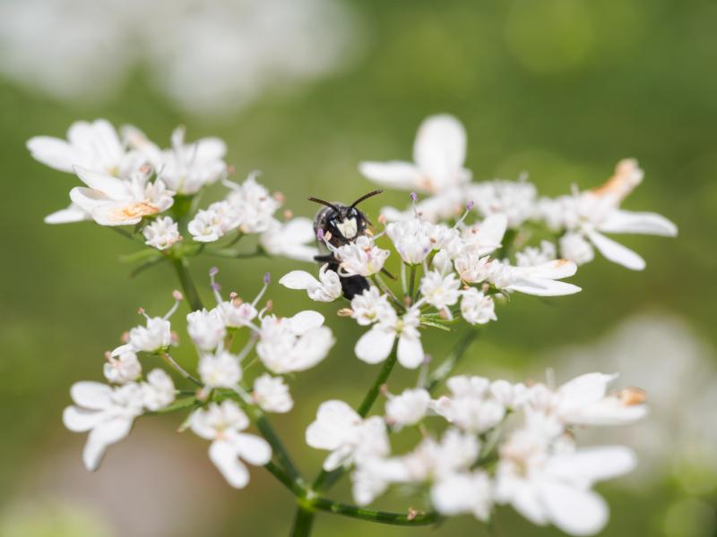 Maskenbiene auf Koriander