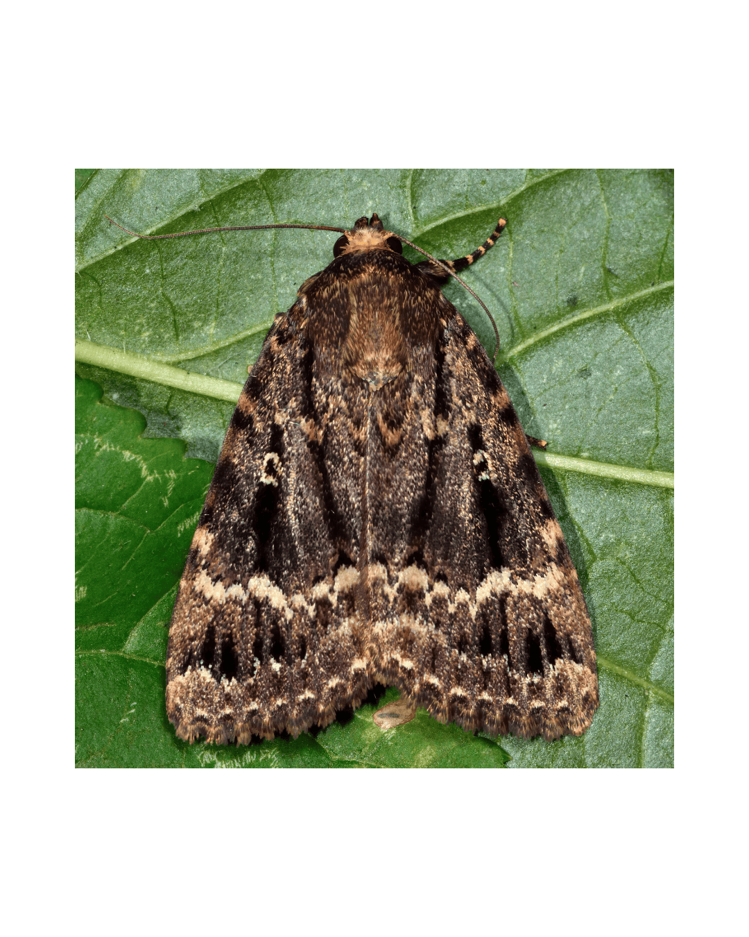 Falter: unscheinbarer, grau-brauner Falter. Spannweite 40-50 mm. Fliegt von Juli bis September.