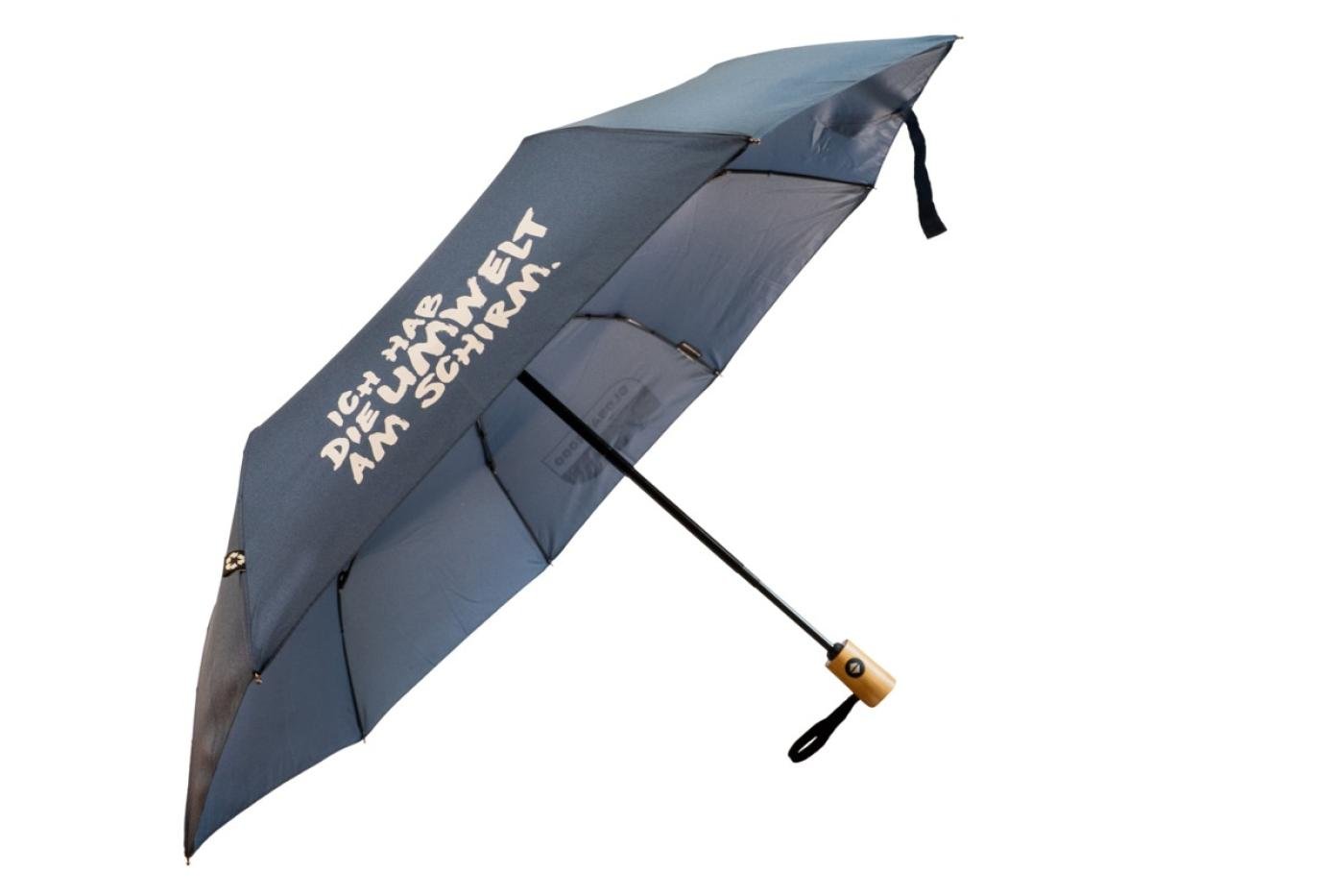 Öko-Regenschirm mit Schriftzug in dunkelblau
